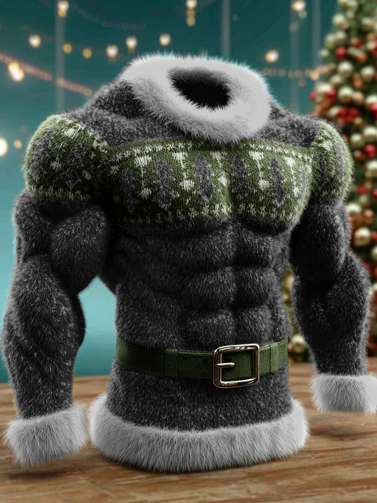 Men's Christmas Tree Pattern Ugly Flannel Hoodie