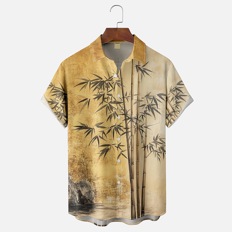 Men's Bamboo Forest Gradient Chest Pocket Hawaiian Shirt