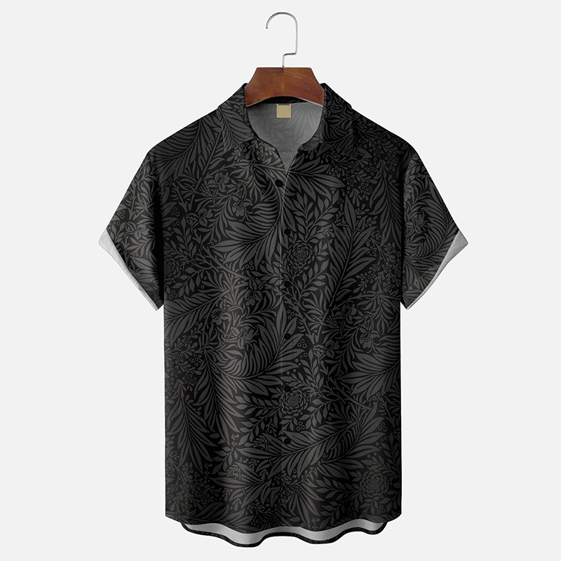 Men's Black Botanical Chest Pocket Hawaiian Shirt