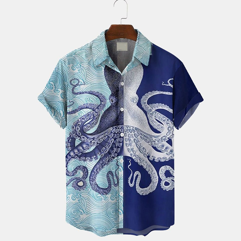 Men's Vacation Vintage Ocean Octopus Art Hawaiian Shirt