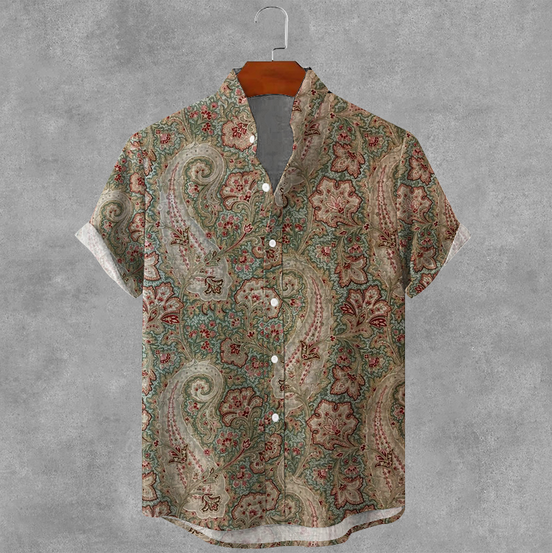 Men's Vintage Paisley Graphics Art Linen Blend Cozy Shirt
