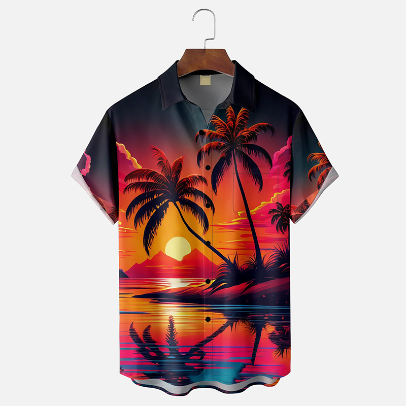 Sunset Coconut Tree Hawaiian Casual Shirt