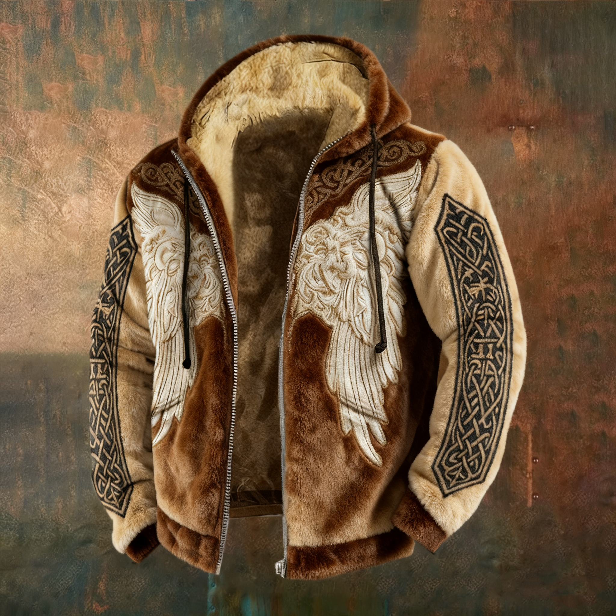 Men's Retro Celtic Knot And Wing Art Plush Coat