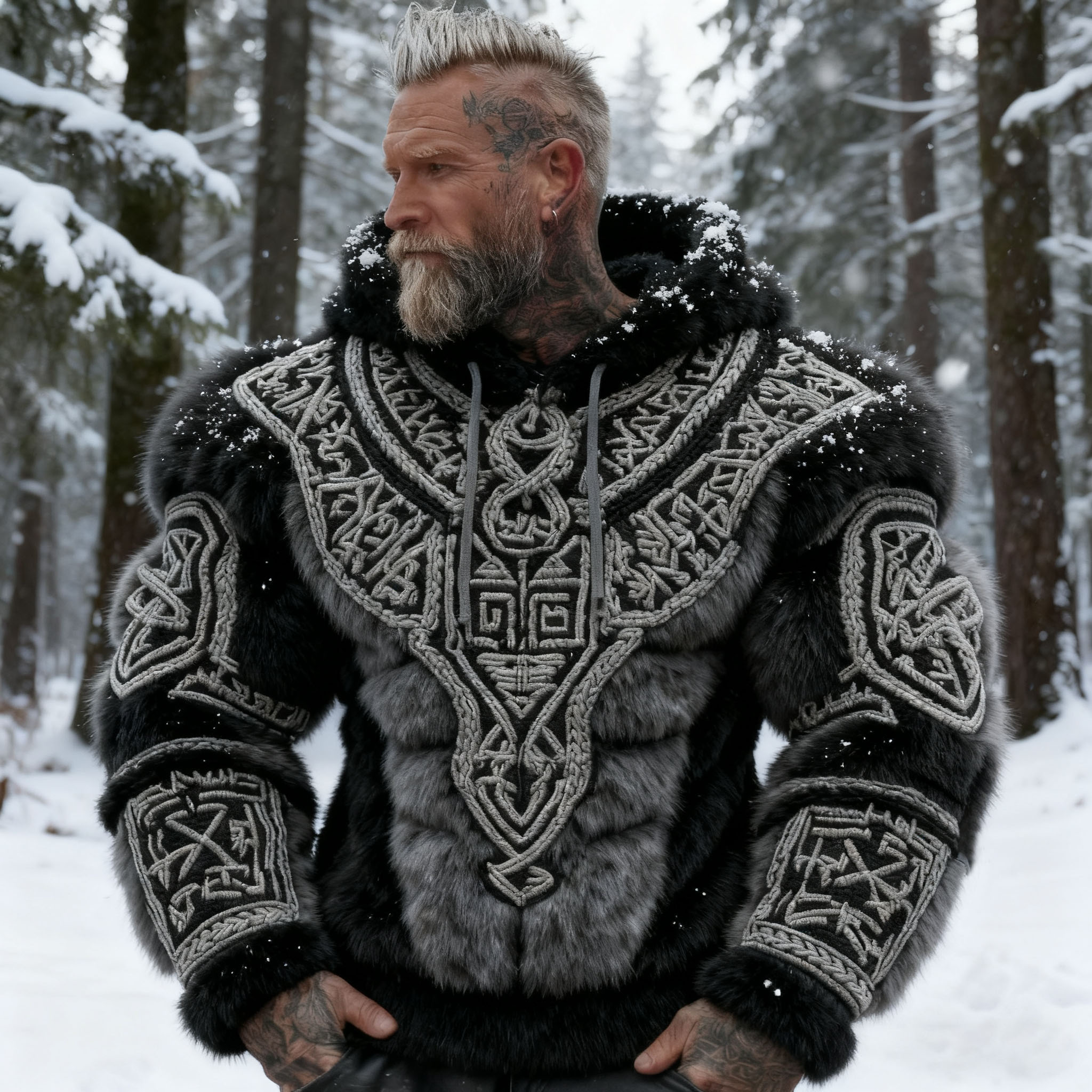 Men's Vintage Viking Celtic Knot Pattern Plush Warm Hoodie