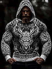 Men's Viking Tribal Dragon Jacquard Celtic Inspired Cozy Hooded Sweater