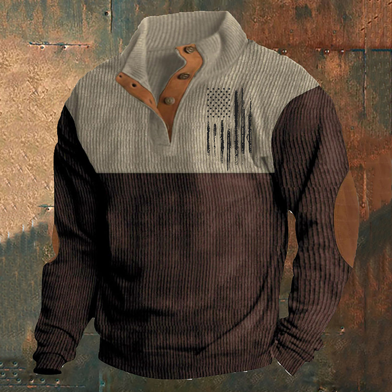 Men's American Flag Printed Stand Collar Half-Zip Sweatshirt
