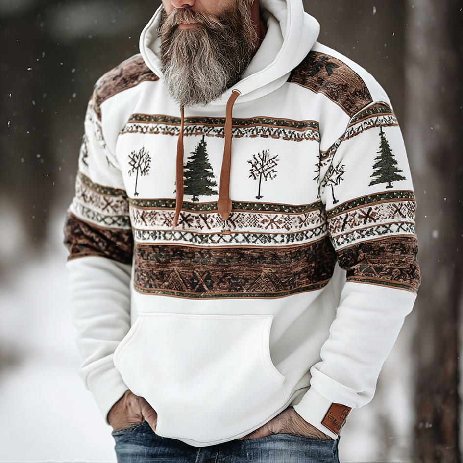 Men's Retro Christmas Print Hooded Sweatshirt
