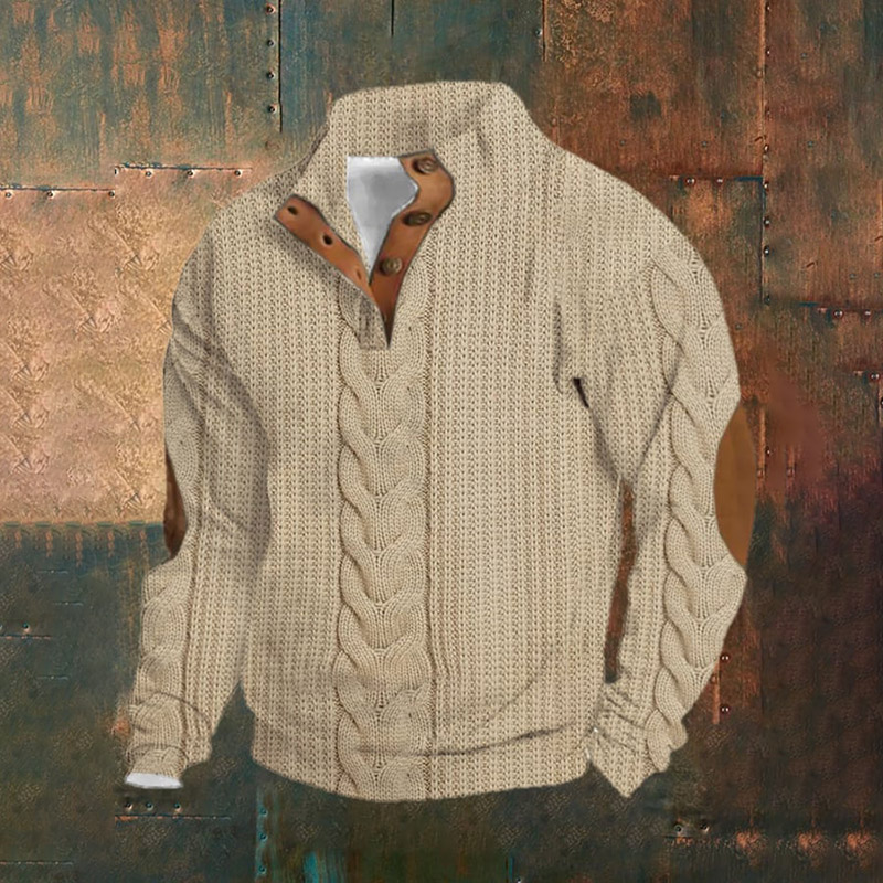 Men's Retro Western Jacquard Buttons Casual Sweatshirt