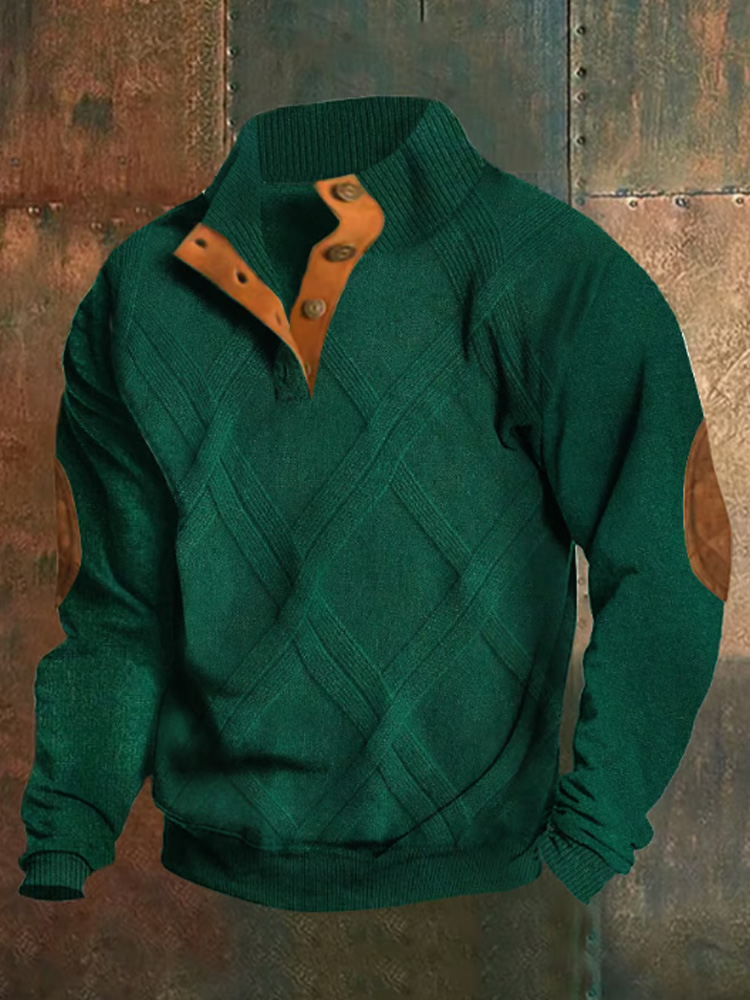 Men's St. Patrick's Day Jacquard Print Stand Collar Button-Down Sweatshirt
