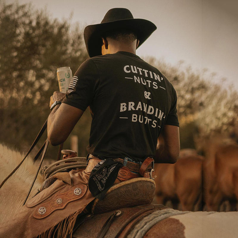 "Cuttin' Nuts&Brandin' Butts"Print T-Shirt