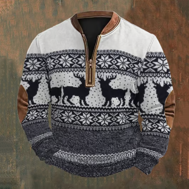 Men's Merry Christmas Snowflake Deer Print Sweatshirt