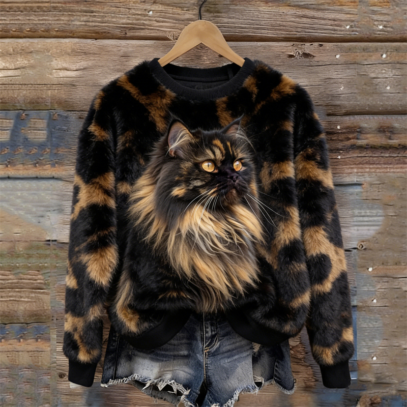 Fuzzy Tabby Cat Inspired Tabby Pattern Cozy Plush Sweatshirt