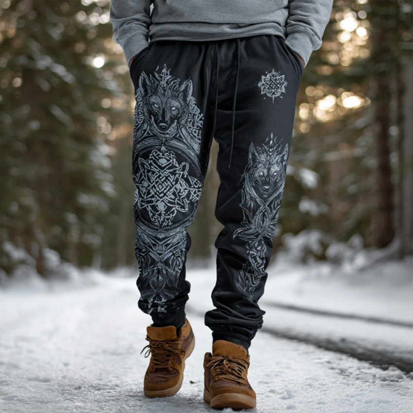 Men's Retro Celtic Knot And Wolf Pattern Comfortable Sports Casual Pants