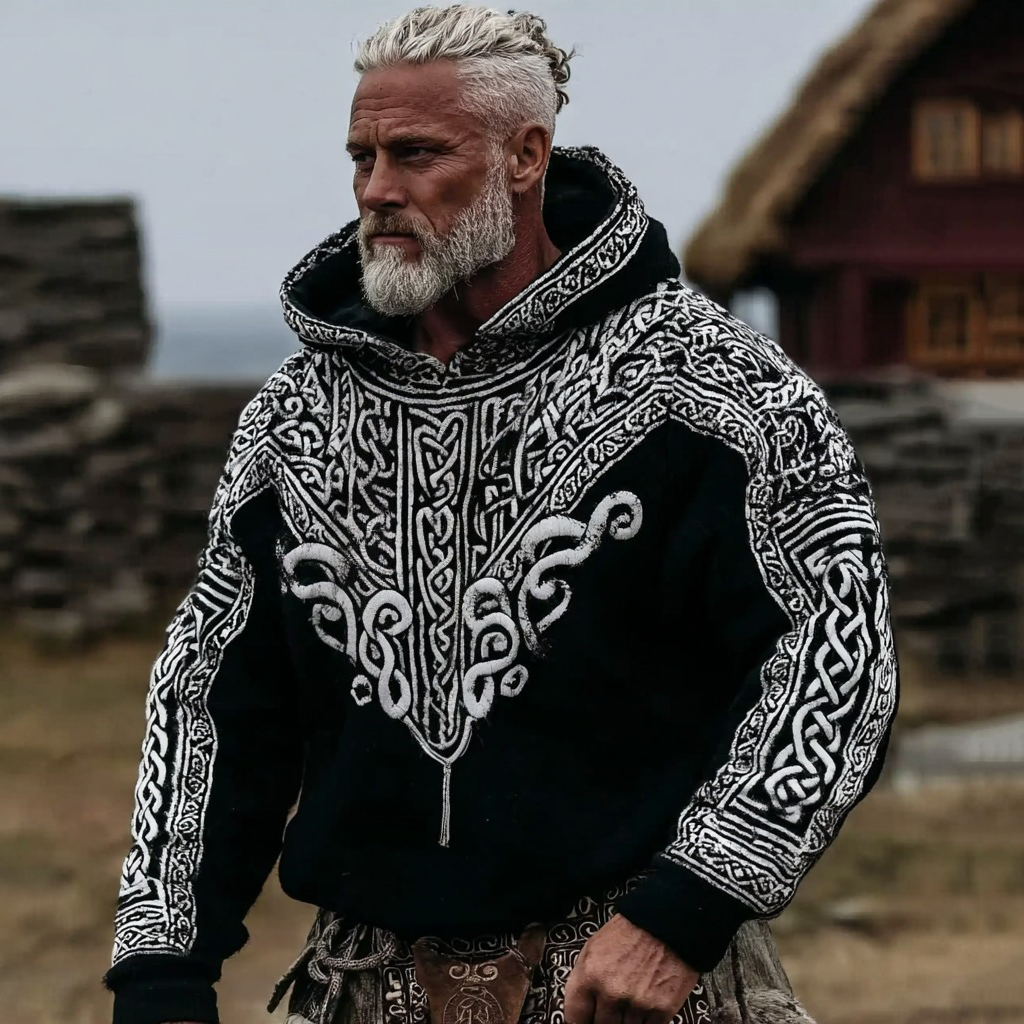Men's Retro Viking Celtic Knot Pattern Casual Hoodie