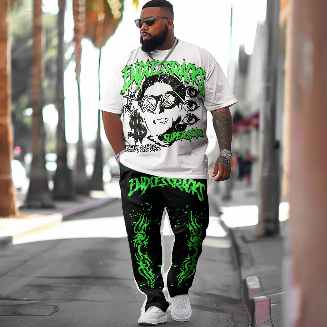 Men's Plus Size Street Hip Hop Endless The Hustler Superstar In Red Graphic Casual Street Short-Sleeved Trousers Casual Two-Piece Set