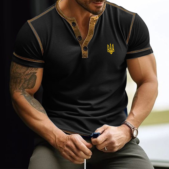 Men's Ukraine Trident Embroidered Casual Henley T-shirt