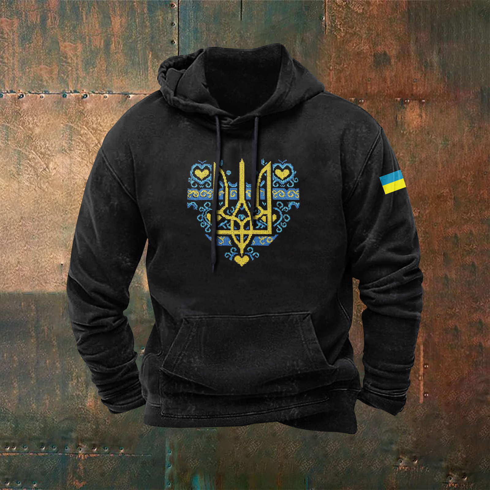 Men's Ukraine Trident Heart Embroidered Casual Hoodie