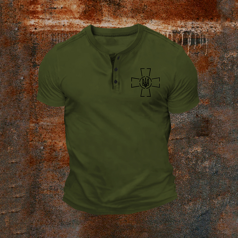 Men's Ukraine Trident Inspired Print Comfy Henley Shirt