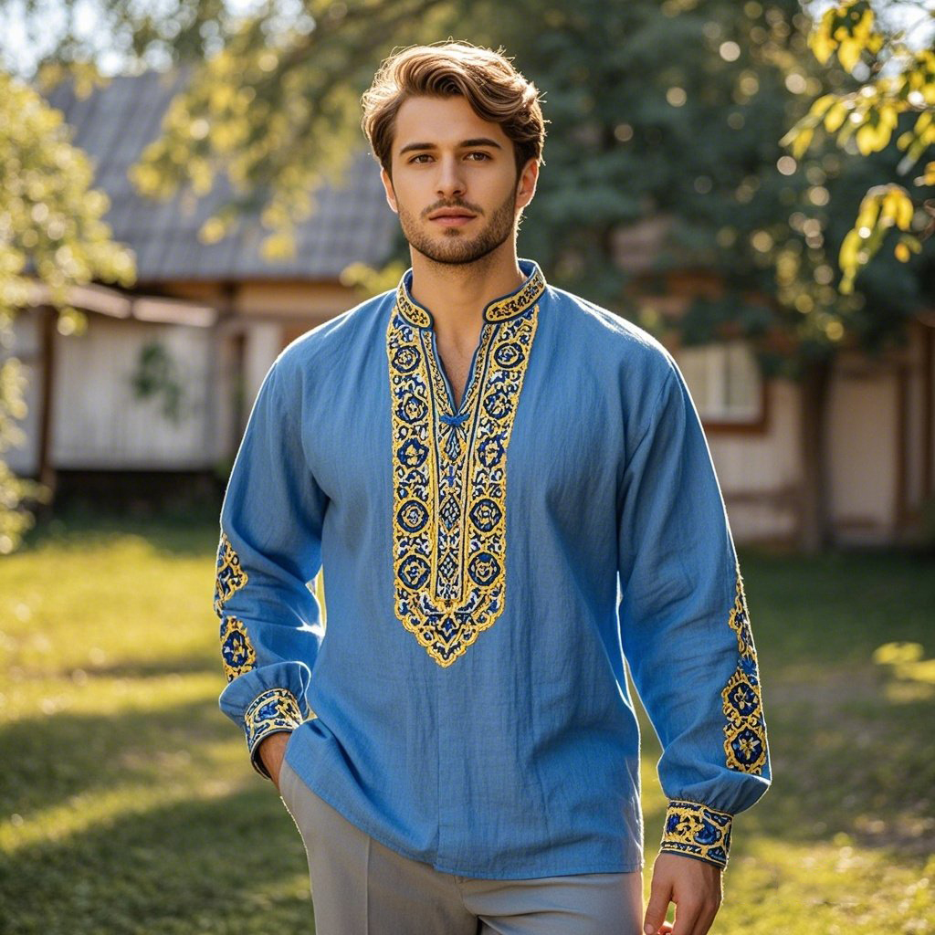 Ukrainian Folk Floral Art Linen Men's Shirt