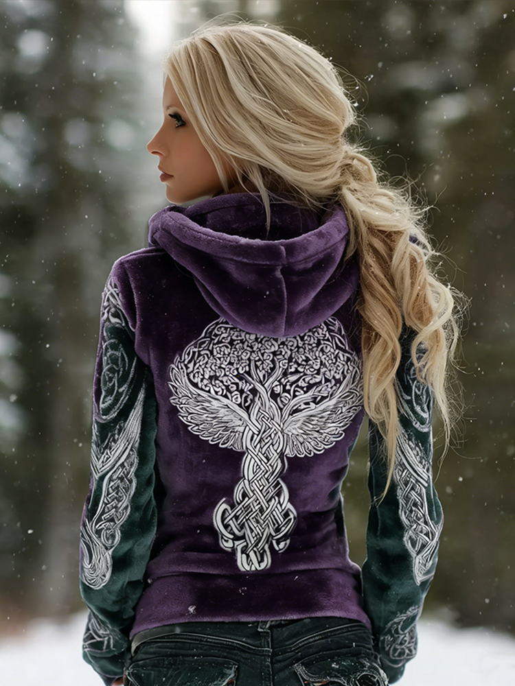 Vintage Viking Celtic Style Women's Winter Warm Flannel Sweatshirt Coat