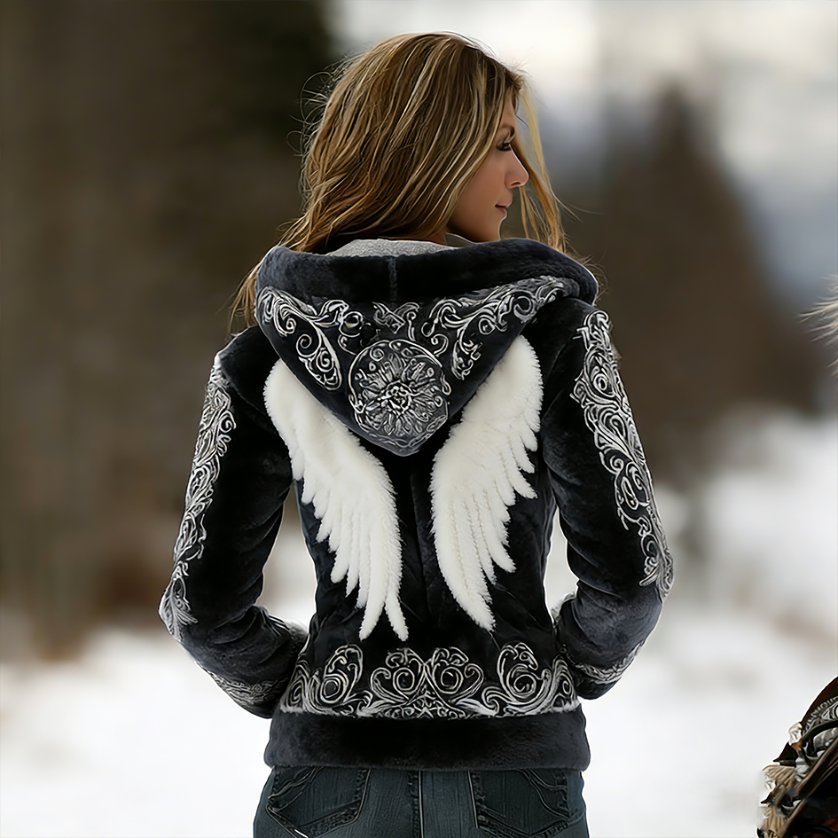 Vintage Viking Celtic Wings Pattern Women's Winter Warm Flannel Coat