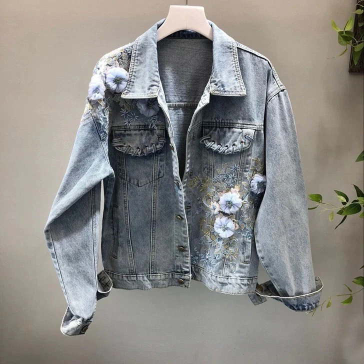 Women's Floral Embroidery Art Denim Jacket