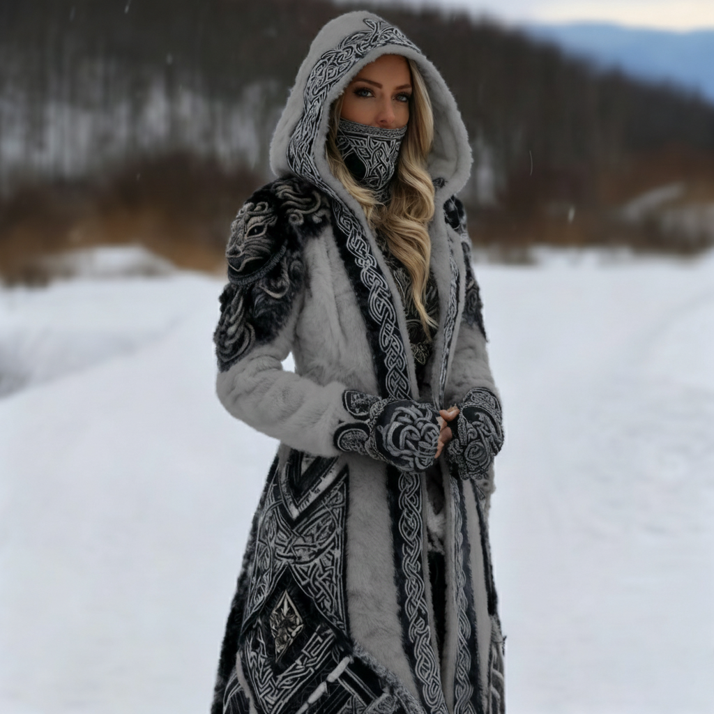 Women's Viking Celtic Knot Inspired Art Plush Warm Hooded Jacket