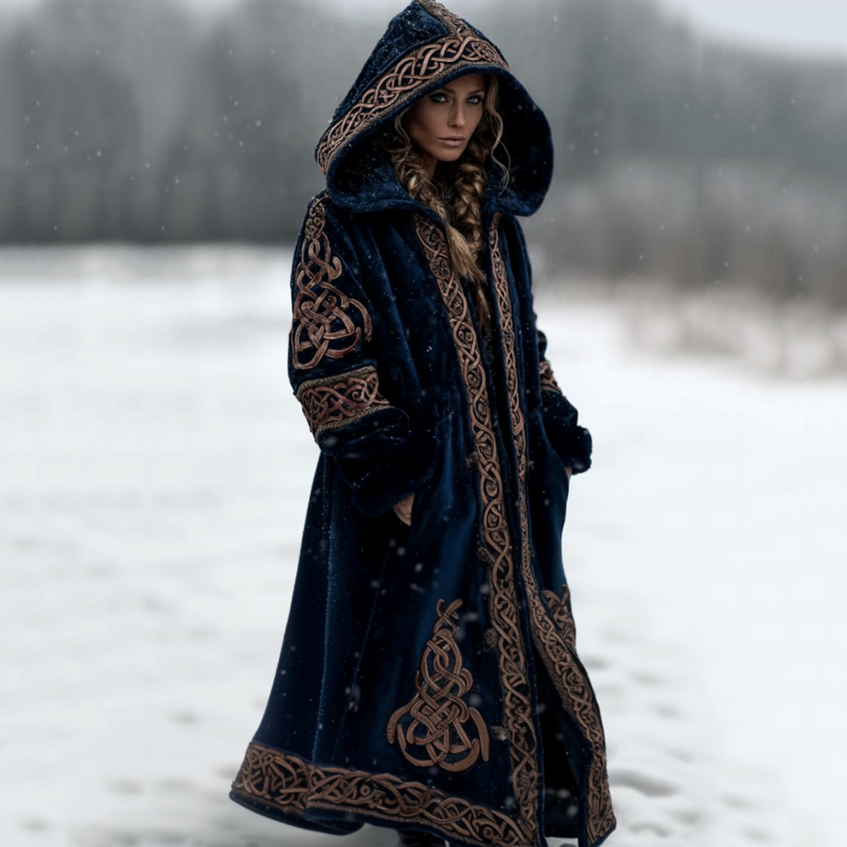 Women's Viking Celtic Knot Inspired Art Plush Warm Hooded Jacket