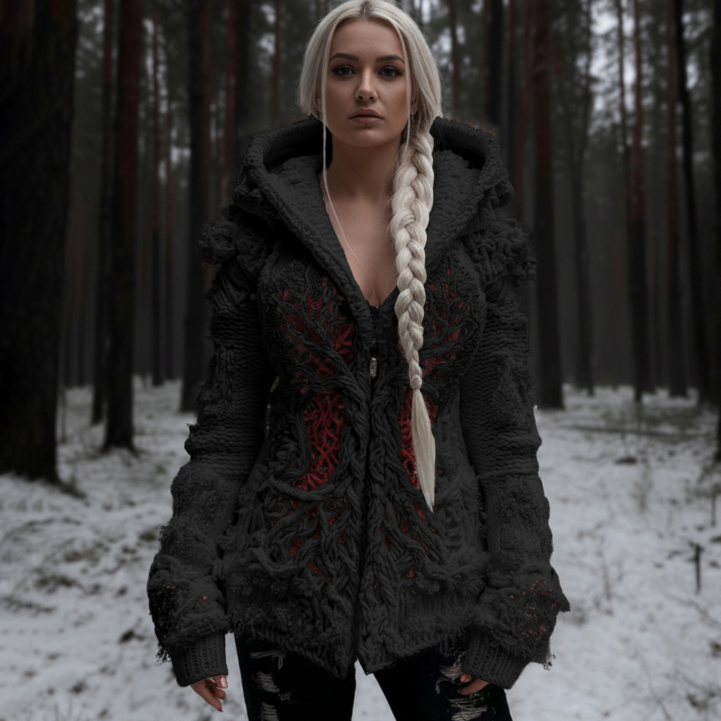 Women's Viking Tree Of Life Cable Knit Zip-up Hooded Sweater