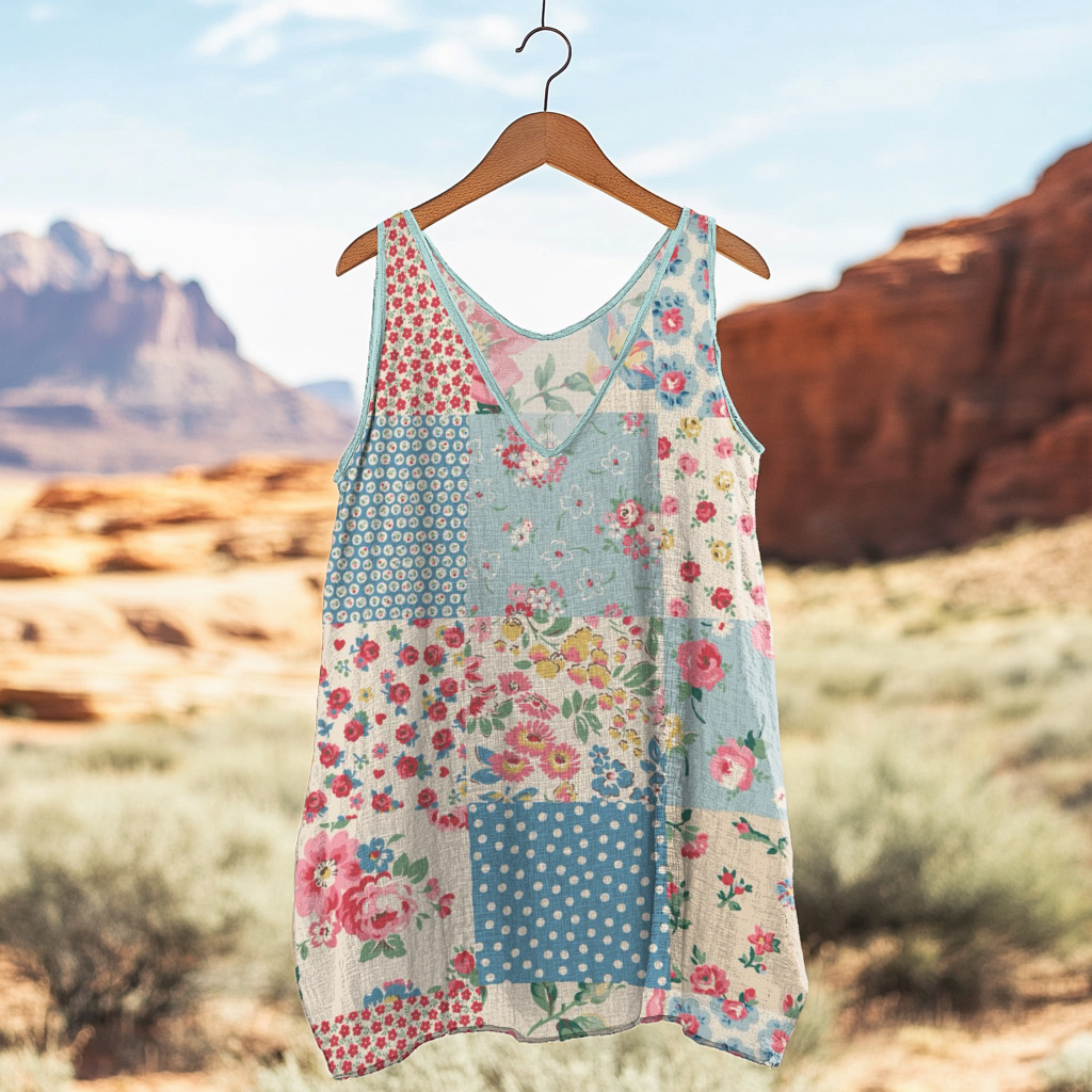 Women's Retro Loose Floral Patchwork Linen Suspender Sleeveless Tank Top