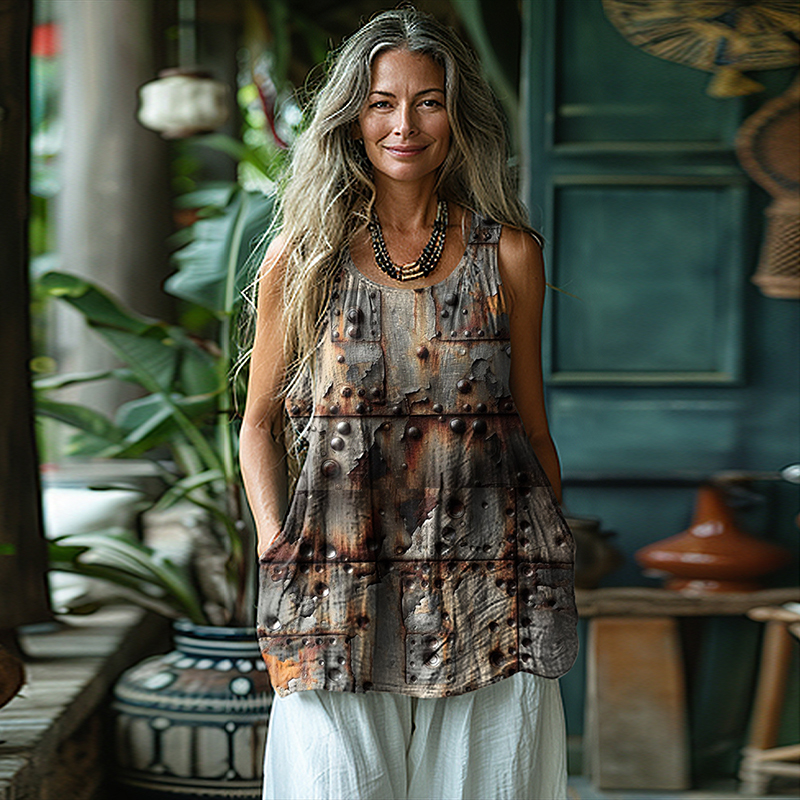 Women's Vintage Rust Print Casual Tank Top